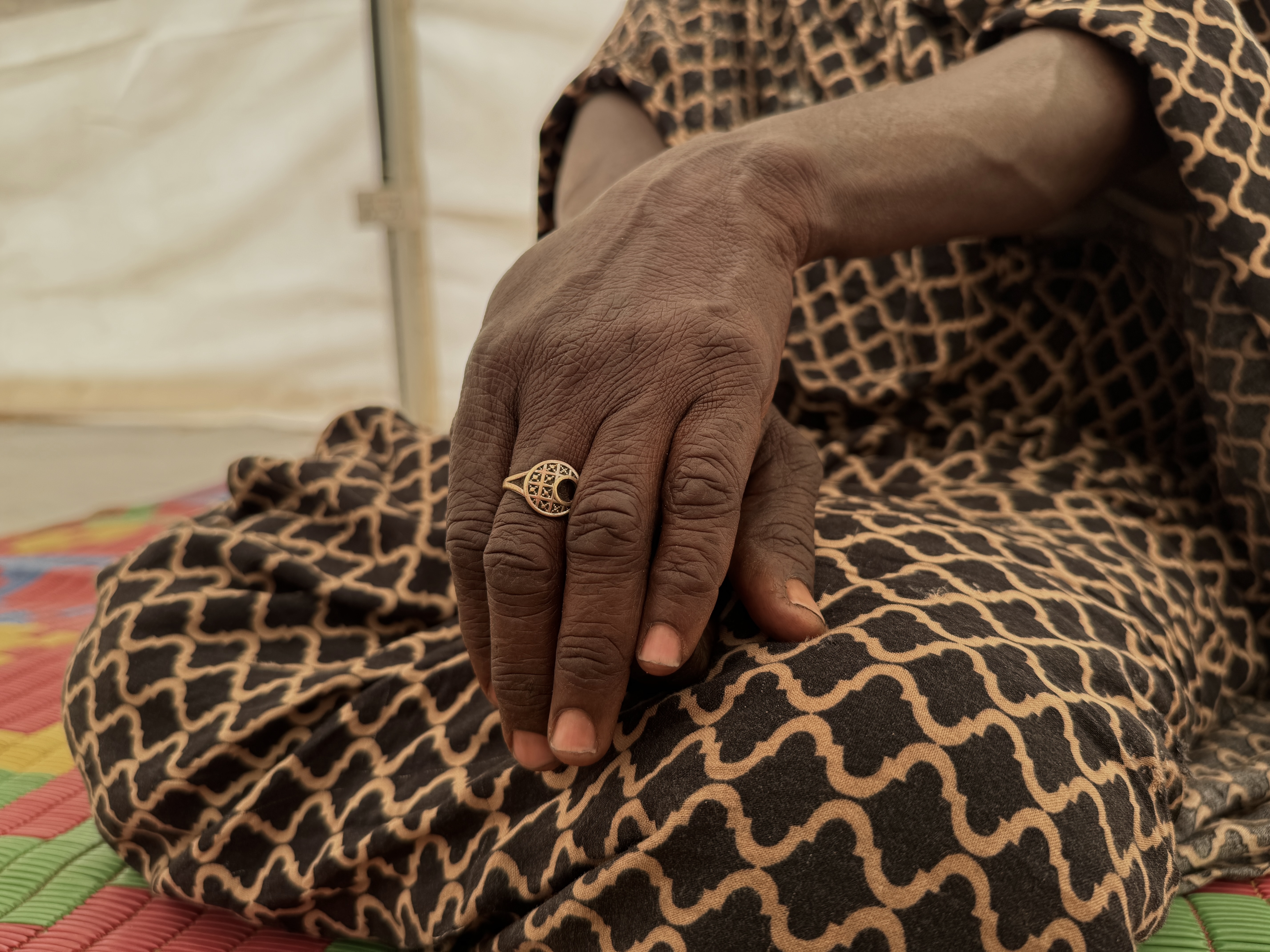 Die 22-jährige Amina* floh aus El Fasher im Bundesstaat Nord-Darfur im Sudan, nachdem sich die Kämpfe zwischen bewaffneten Gruppen verschärft hatten. Zwölf Mitglieder ihrer Familie wurden bei einem Drohnenangriff getötet, darunter ihre Eltern, ihr Ehemann sowie ihre Geschwister. Als sie mit ihren Kindern floh, wurde sie von bewaffneten Männern vergewaltigt. Heute kümmert sie sich um ihre eigenen Kinder und vier Nichten und Neffen. „Manchmal verbringen wir den ganzen Tag und die ganze Nacht ohne etwas zu essen“, sagt sie. „Ich habe noch nie mit jemandem über die Vergewaltigung gesprochen. Niemals. Ich habe einfach Geduld bewiesen. Ich wünschte, ich könnte vergessen, was mir widerfahren ist.“