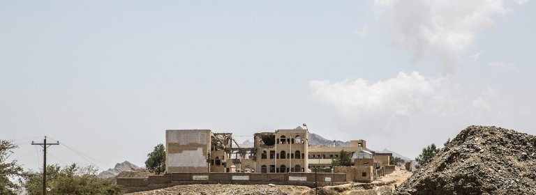 Yemen, gouvernorat de Saada, Haydan, 15 mars 2018. L'école de Haydan, bombardée en 2016 par la coalition internationale dirigée par l'Arabie Saoudite
