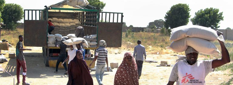 MSF a distribué 810 tonnes de nourriture à Maiduguri, dans le nord-est du Nigeria, ce qui correspond à l’alimentation nécessaire pour 26000 familles pendant deux semaines.
